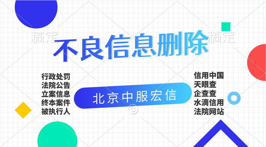 北京中服宏信企业服务 北京中服宏信企业服务有限公司,是一家为企业信用修复提供服务的公司。当企业有了司法诉讼记录、裁判文书记录、立案信息记录、失信信息记录、被执行人记录、限制高消费记录,行政处罚记录、环保处罚记录,您都可以找北京中服宏信来帮您处理。修复删除不良信息记录,修复后信用中国、裁判文书网、执行公开网、法院网站、天眼查、企查查等网站不在公示相关信息。企业信用修复,请联系北京中服宏信。
