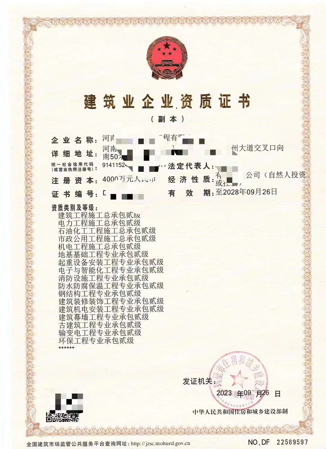 2024年全网最低价新办资质,包手续、送安许、送证书人员,送维护 办好在给钱!办不好不收费!!! 1、升级|专业二升一、一升特、设计勘察乙升甲、专项设计乙升甲、承装修试4升3,3升2、 2、新办:承装修试444、公路交通养护资质、公路养护桥梁、隧道甲乙级、公路养护路基路面甲乙级、设计乙、勘察乙、监理乙(住建部、水利部、交通部均可)、测绘乙、承装修试444、公路养护(四大类)甲乙级、安全生产许可办理、压力管道、房地产开发资质新, 3、业绩补录、人员补充、动态核查、资质维护 有需要的老板可以联系我 王经理 19150013651
