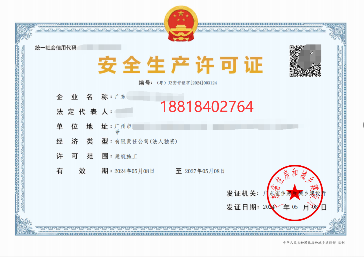 广东省代办安全许可证,包过,可包人才,电话:18818402764