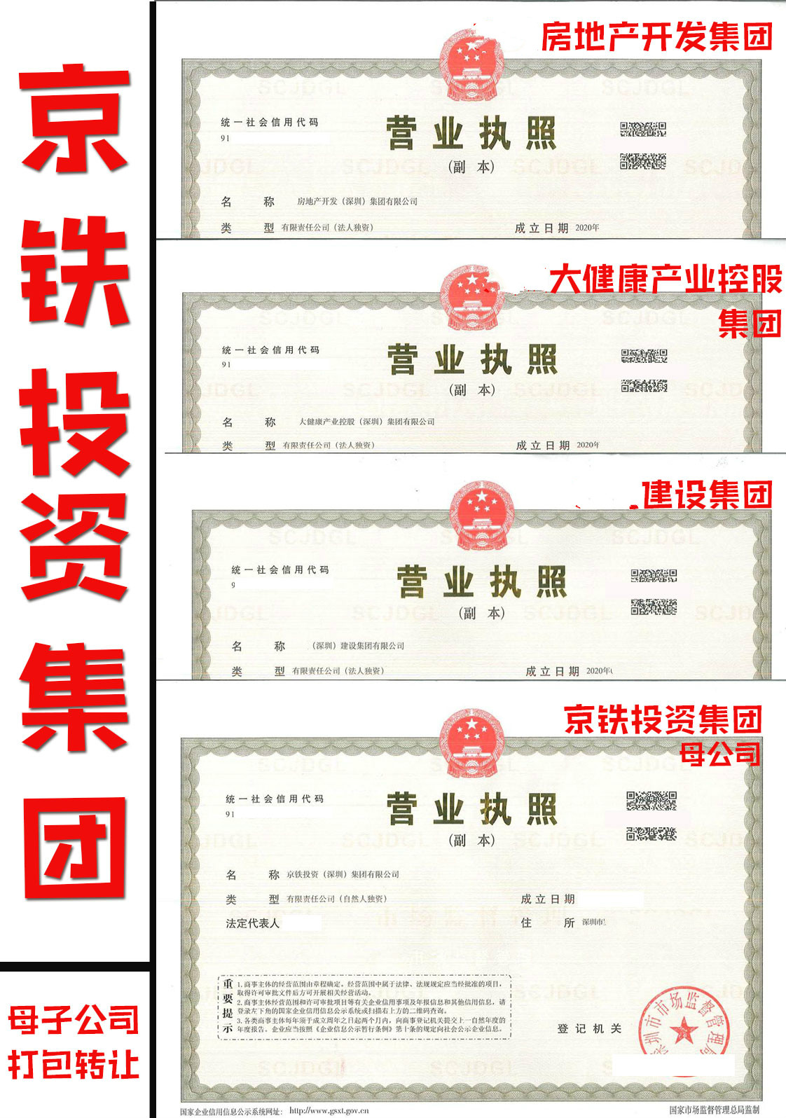 集团公司,是为了一定的目的组织起来共同行动的团体公司,是指以资本为主要联结纽带,以母子公司为主体,以集团章程为共同行为规范的,由母公司、子公司、参股公司及其他成员共同组成的企业法人联合体。公司的发展离不开自身的宣传与产品外,公司名称也是起到主导作用,代表着公司的实力、文化和底蕴。 要组织一家集团公司,子母公司字号都想要相同,需要达到什么条件?现在注册集团还需要有集团证吗? 2018年7月28日,国务院决定取消企业集团核准登记、设立分公司备案、外商投资合伙企业设立、变更、注销分支机构备案和营业执照作废声明等涉及企业登记注册的事项,要求强化信息公示和协同共享,加强事中事后监管。各地工商和市场监管部门要按照《国务院关于取消一批行政许可等事项的决定》要求,不再单独登记企业集团,不再核发《企业集团登记证》。也就是说现在申请的集团公司只有营业执照,单独“集团”性质,无需集团登记证即可独立运营! 想成立一家同名系列的集团,多地政策不同受阻,相近似的谐音都不行,不过咱们也可以通过收购的方式来实现,我手上有几家同名系列集团公司,字号简单响亮寓意深远,行业及经营范围多元化的集团型企业,有意的朋友可与我联系 公司名称:子母公司字号一致 【京铁投资集团公司】 子公司ⅠXX建设集团 ⅡXX房地产开发集团 ⅢXX大健康产业控股集团 —————————————— 【工交控股集团公司】 子公司ⅠXX科学研究中心 ⅡXX大健康产业集团 ⅢXX城市发展建设集团 —————————————— 【华铁产业控股集团】 子公司ⅠXX投资集团 ⅡXX发展建设集团 ⅢXX城市发展运营 ⅣXX新基建产业集团 ⅤXX大健康产业控股集团 以上三家同名系列集团公司子母公司一并转让,干净无经营,无任何债权债务 【另转让中投、中信、中交、中能、中农、中建、中核、中车等大名气字号集团公司】