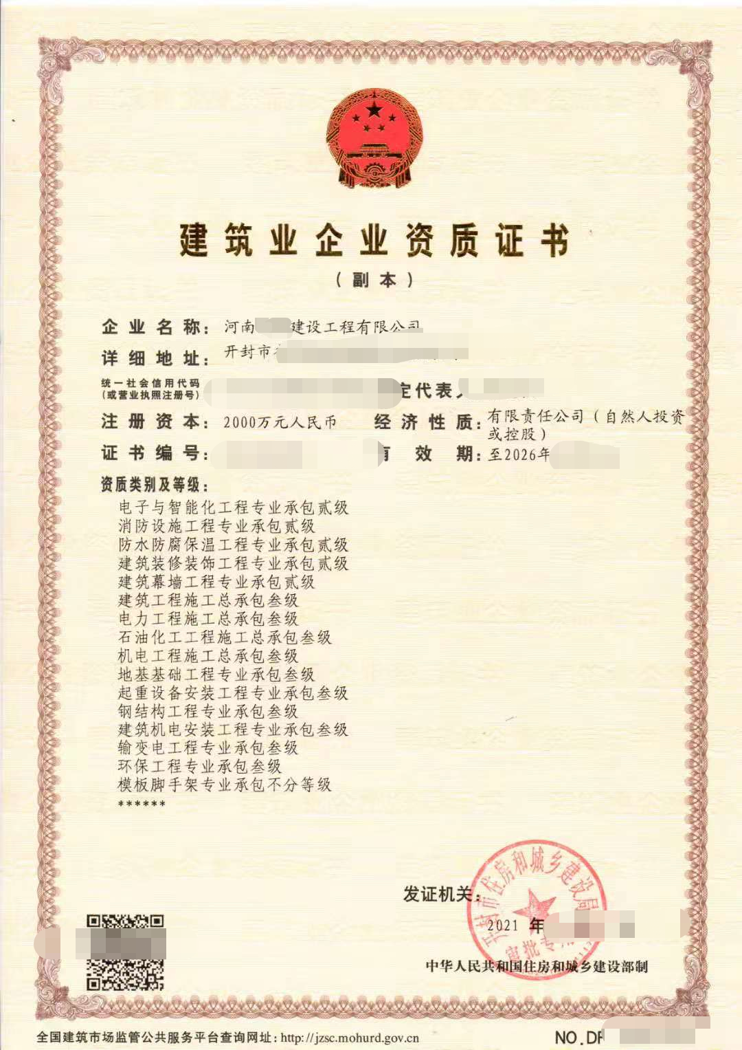 河南市政三级房建施工总承包资质公司股权转让 建筑施工总承包三级、市政公用工程施工总承包三级是建筑业施工资质里的总承包资质,目前全国三级资停止办理,无法按照之前新办的方式取得,着急于参加招投标或者参与需要有效资质的工程,目前通过百分百股权转让的形式收购带有合适资质的建筑公司是唯一方式。 21年公司成立,于7、8月左右成功办理资质书,安全生产许可现已公告领取! 公司全新未经营、无任何隐藏债务纠纷或法律诉讼、社保税务等工商一切可查询,真正做到买的放心卖的省心! 目前我司按照各地相关部门规定已办理了建筑企业施工的组合资质,各种类型,总有一款让您心仪! 资质明细: 总承包包括:房建三级、市政三级、电力三级、机电三级、石油化工三级、公路三级 专业承包包括:装修、、幕墙、防水、电子与智能化、输变电、机电安装、地基基础、钢结构、起重设备安装、模板脚手架、特种工程、劳务 开封 电力施工总承包三级+输变电三级+机电安装三级+防水二级+特种工程 现成安许 开封 机电安装三级+输变电三级+特种工程 现成安许 郑州 建筑施工总包三级+市政总承包叁级+机电施工总包三级+防水二级+装修二级+地基三级+照明三级+环保三级 现成安许 郑州 建筑施工总包三级+市政总承包叁级+防水二级+装修二级+钢结构三级+环保三级 现成安许 郑州 建筑施工总包三级+机电施工总包三级+防水二级+装修二级+钢结构三级+环保三级+幕墙二级+特种工程四项 现成安许 郑州 建筑施工总包三级+市政总承包叁级+装修二级+防水二级 现成安许 周口:市政总承包叁级+建筑施工总包三级+地基基础专包贰级+钢构叁级 现成安许 开封:市政总承包三级 现成安许 市政总承包三级+房建总承包叁级+地基三级+防水二级 现成安许 平顶山:房建+机电+市政总承包叁级+劳务/环保 现成安许 以上资质全部包做变更手续,迁出及落地!