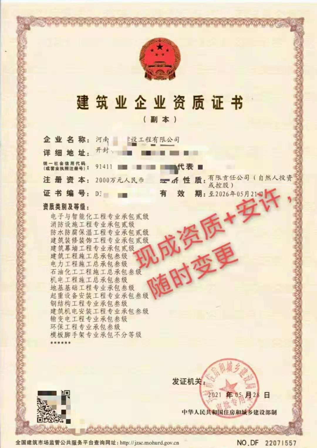股转郑州市地基基础工程专业承包施工资质一级 我司在河南省郑州及各个地市按照当地建委及相关部门有要求条件,注册数个全新建筑型公司,并于今年成功办理了多个建筑施工资质及安全生产许可资质,全部全新无任何经营,无开票,无债务,无纠纷,无法律诉讼等,且体现在合同协议之内,如经营中发现存在任何与合同内容不符问题,全额退款! 变更手续我司全程一对一服务,全套手续我方操办,企业无需任何支出,包含:工商法人股权、营业地址、注册资本、税务、社保、资质及安许的全部事项! 郑州 建筑施工总包三级+市政总承包叁级+机电施工总包三级+防水二级+装修二级+地基三级+照明三级+环保三级 现成安许 郑州 建筑施工总包三级+市政总承包叁级+防水二级+装修二级+钢结构三级+环保三级 现成安许 郑州 建筑施工总包三级+市政总承包叁级+装修二级+幕墙二级+钢结构三级 现成安许 开封 电力施工总承包三级+输变电三级+机电安装三级+防水二级+特种工程 现成安许 开封 机电安装三级+输变电三级+特种工程 现成安许 开封:市政总承包三级 现成安许 市政总承包三级+房建总承包叁级+地基三级+防水二级 现成安许 商丘: 市政总包三级+起重设备安装三级 现成安许 周口:防水二级+钢结构三级 现成安许 周口:房建三级+市政三级+公路三级+桥梁三级+地基三级+路面三级+路基三级 现成安许 平顶山:房建三级+机电三级+市政总承包叁级+劳务/环保 现成安许 以上资质全部包变更手续 建筑埋在地面以下的部分称为基础。承受由基础传来荷载的土层称为地基,位于基础底面下第一层土称为持力层,在其以下土层称为下卧层。地基和基础都是地下隐蔽工程,是建筑物的根本,它们的勘察、设计和施工质量关系到整个建筑的安全和正常使用。 在建筑设计之前,必须进行建筑场地的工程地质勘查,并对地基上(岩)进行物理力学性质试验,从而对场地工程地质条件做出正确的评价,这是做好设计和施工的先决条件。因此,我国早已规定,没有勘察报告不能设计,没有设计图纸不能施工。