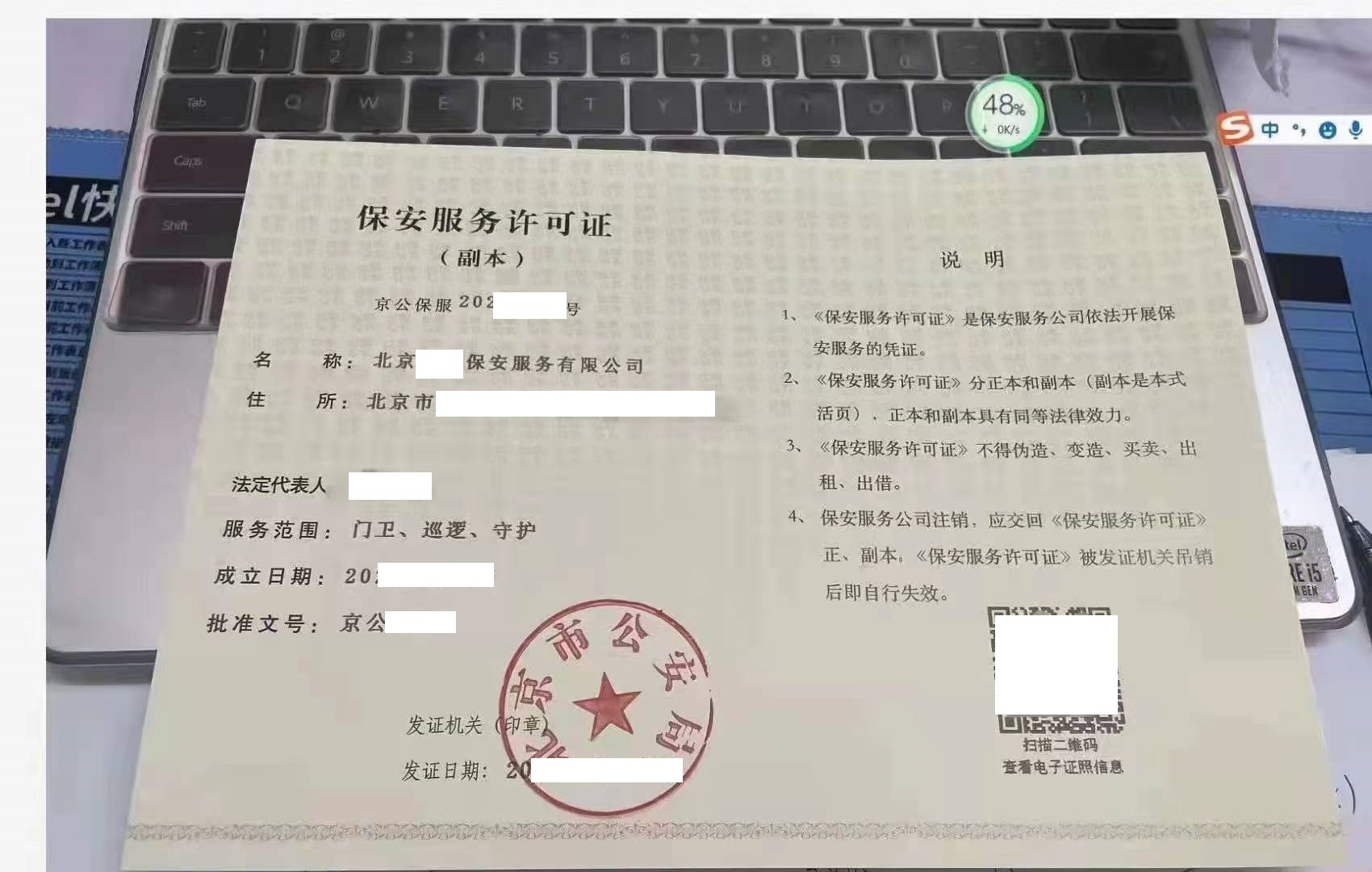​2、接全国:保安服务公司新注册,可提供地址和保安师,或者用您自己的也行;